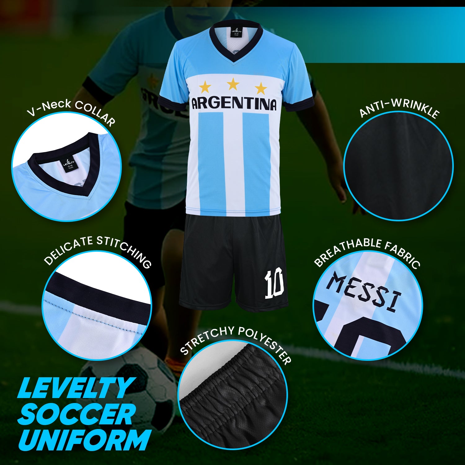 Messi Argentina Sky-Blue uniform kits